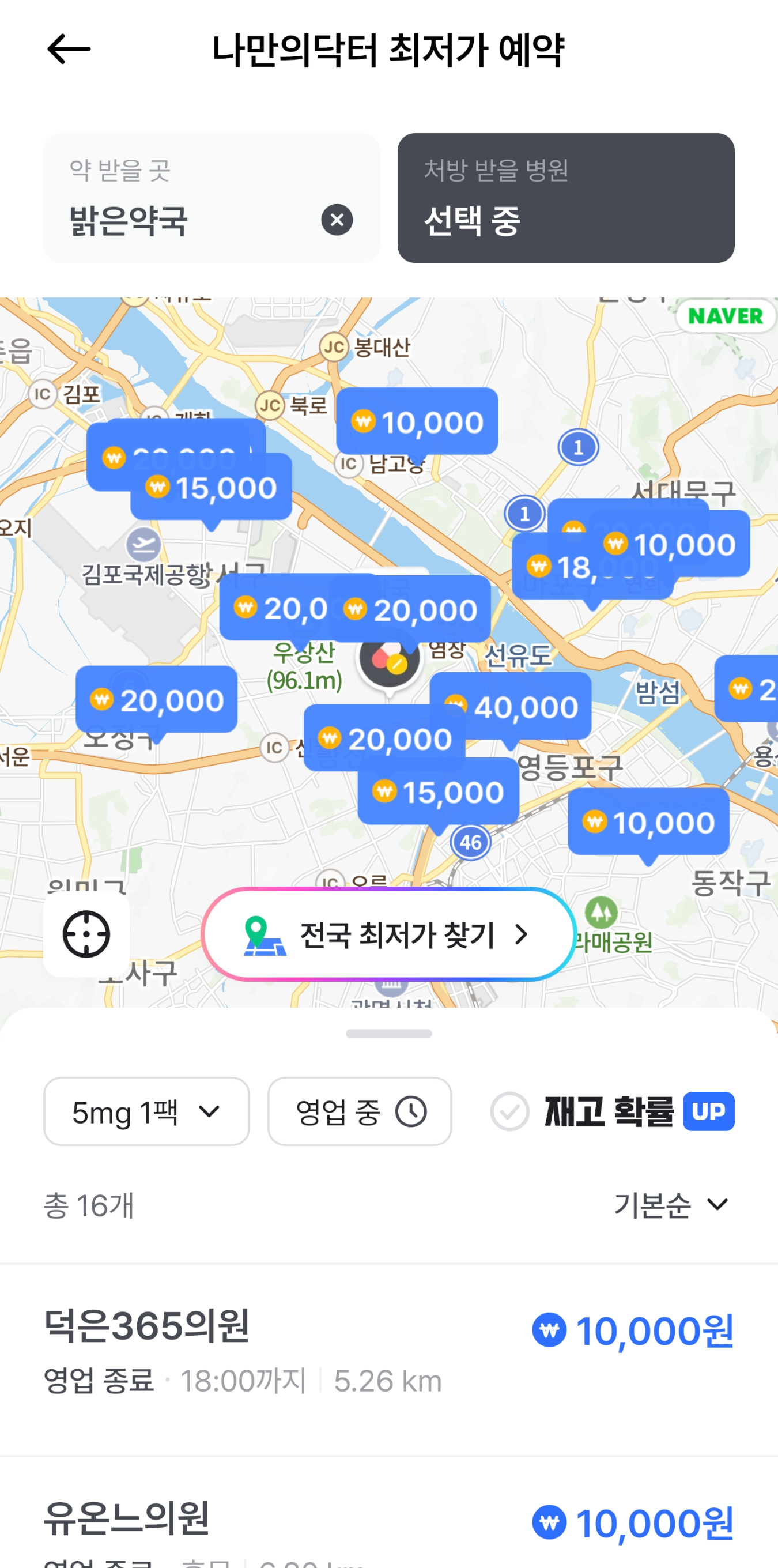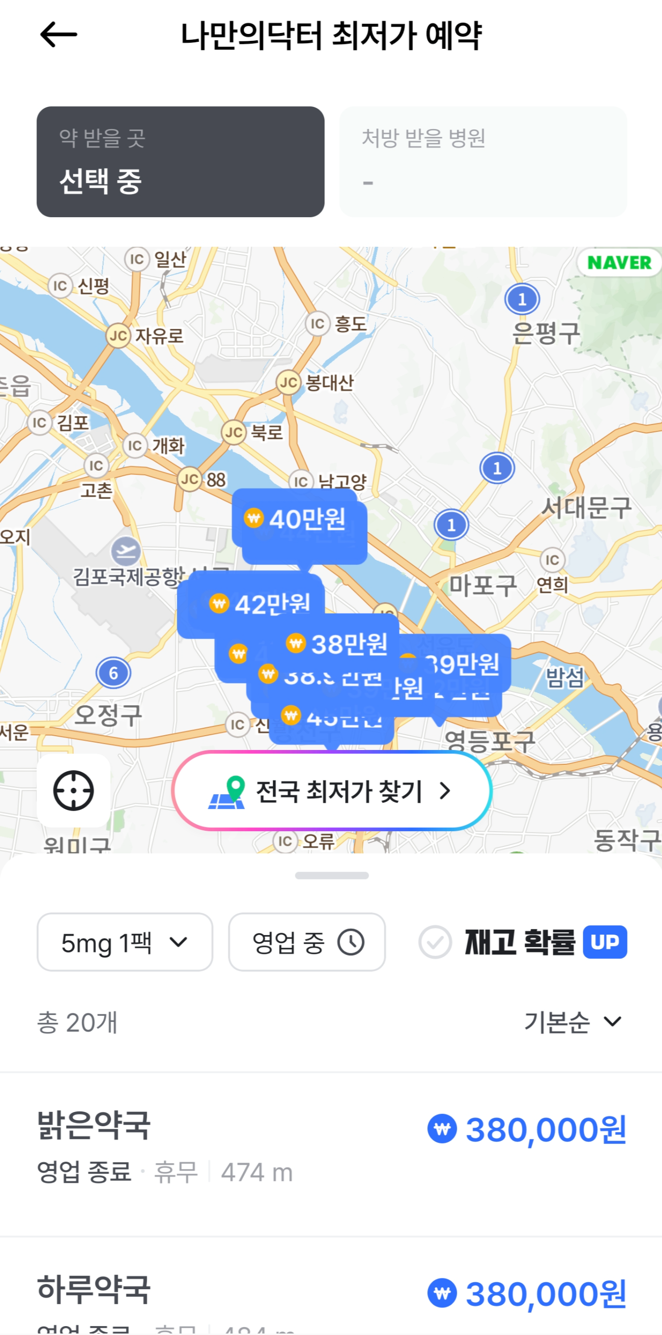모든 병원이 등록되어 있는건 아니라서 동네에 처방해 주는 병원이 더 있을 수 있지만, 이런식으로 최저가를 비교해 볼 수 있으니 상당히 편해요.
