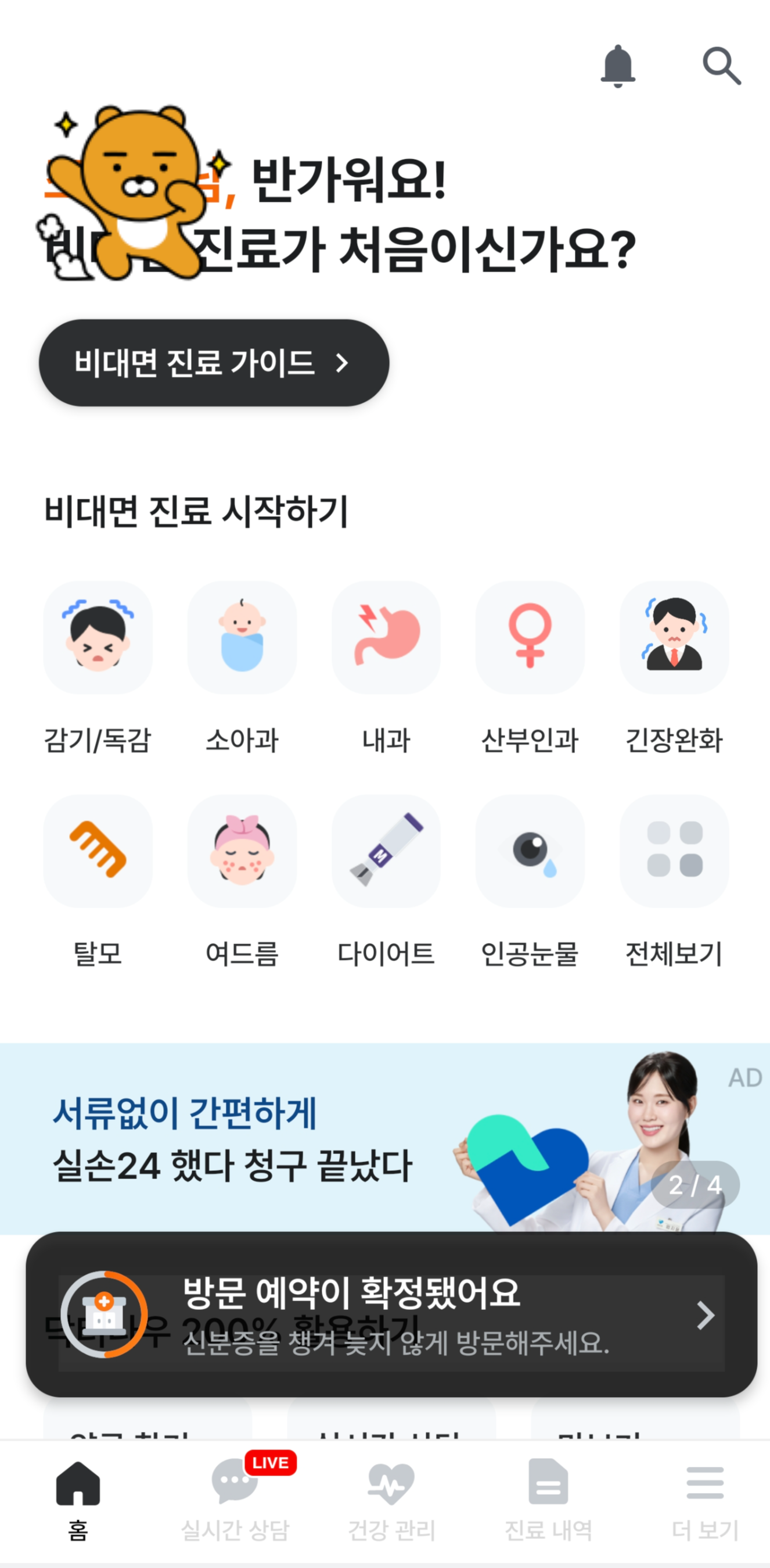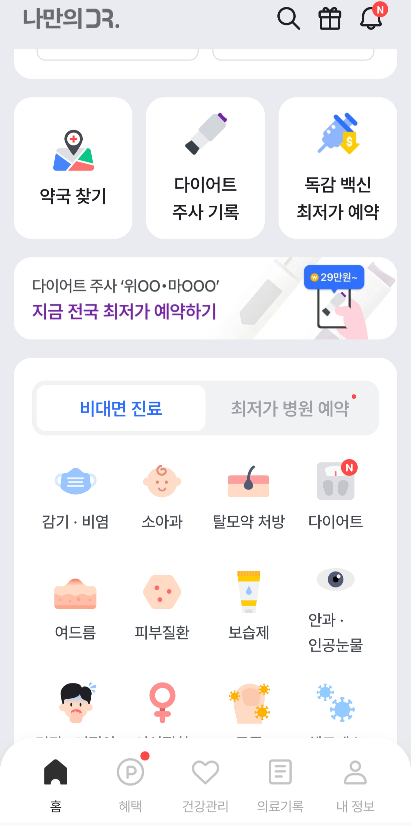 안전한 비대면 진료 • 최저가 병원/약국 예약 앱