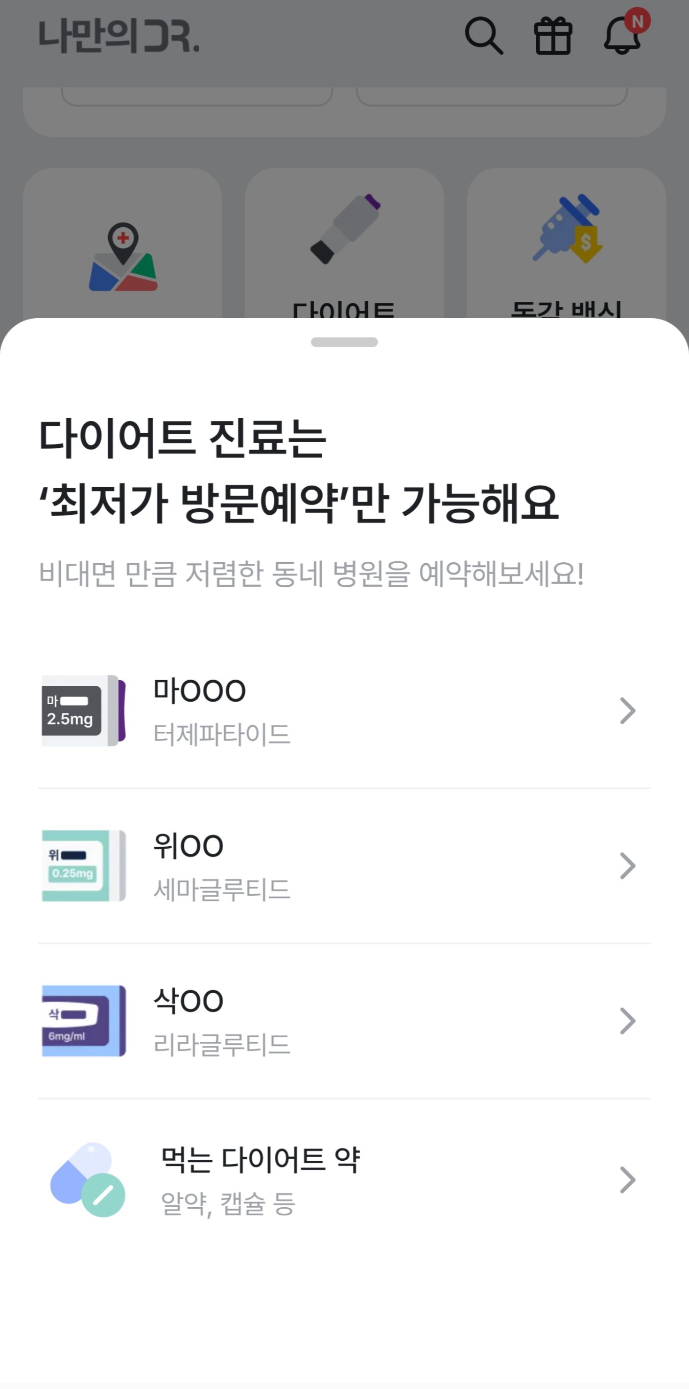 이 앱은 마운자로의 원내처방처럼 한번에 편하게 구입하고자 하시는분들께 추천드려요.