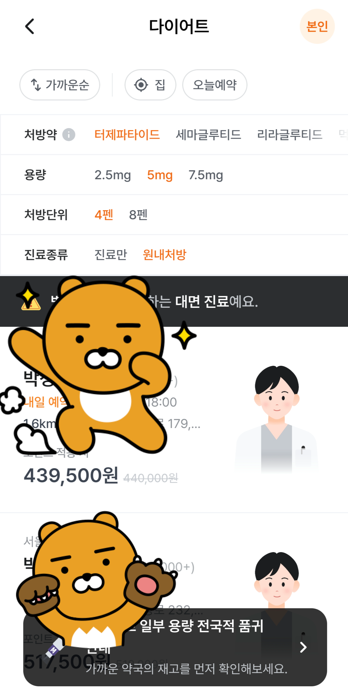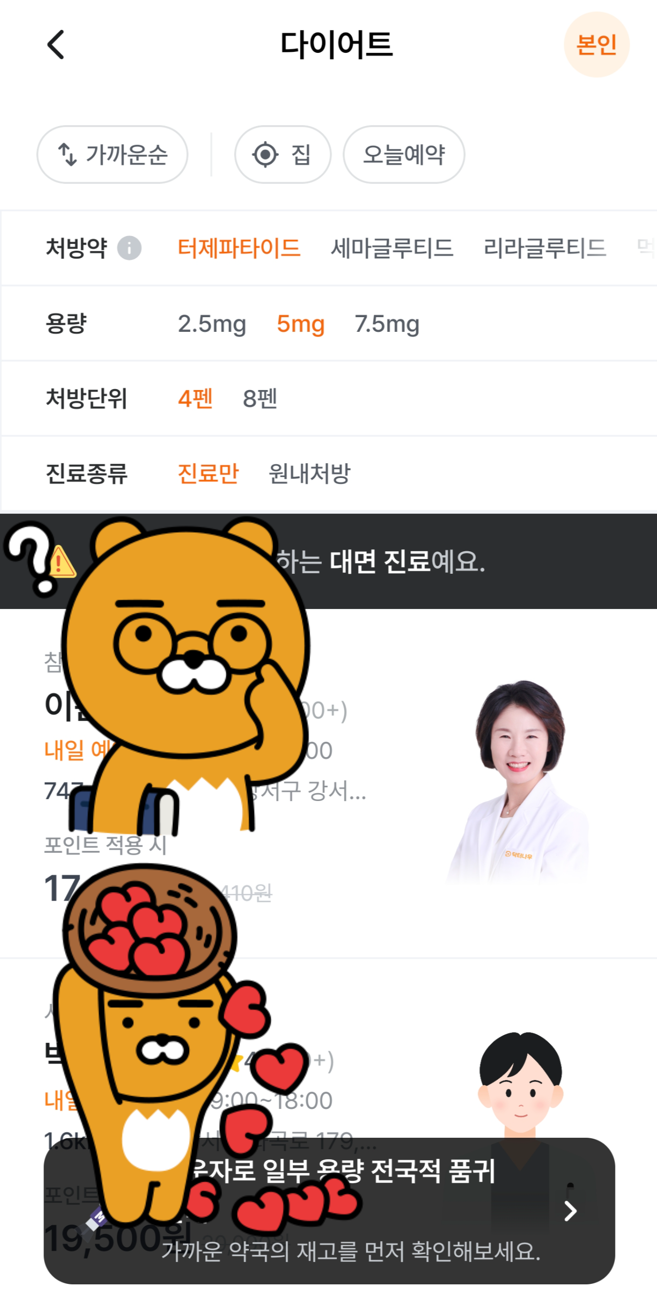 이런식으로 마운자로의 처방전을 제공하는 병원이 나와요.